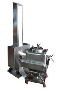 Suitable size of butter fly valve at one end of the cone provided for material discharge & hole with openable cover provided at other end of the cone for material charging & cleaning.