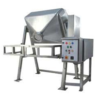 OPERATION The "V" BLENDER is an efficient and versatile blending machine for mixing and lubrication process of dry powders homogeneously. Approximate two third of the volume of the Blender is filled to ensure proper mixing. The "V" Blender gives best result for powders due to suitable medium speed and "V" shape of container. It can be used for Pharmaceutical, Food, Chemical and Cosmetic products etc…… SPECIAL FEATURES