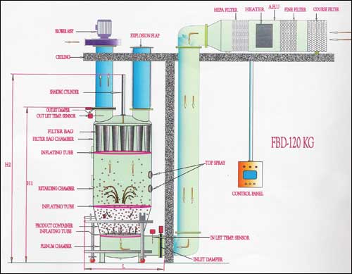 The design and manufacture of the dryer is of high standard of GMP and has an aesthetic look. It is buffed externally to 150 grit matt finish and internally buffed to 220 grit mirror finish.