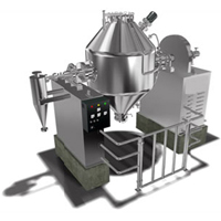 Rotary Vacuum Dryer is suitable for drying of materials which cannot resist high temperature, material which are easily oxdised, volatile materials which should be retrieved, materials which are strong irritants and poisonous in nature. Rotary Vacuum Dryer with the improved technology integrates during operation under vacuum. The Rotary Vacuum Dryer facilitates enhanced drying efficiency, low temperature operations and economy of process by total solvent recovery. It helps cGMP based working by achieving optimum dust control, while offering advantages of efficient charging and discharging of materials. The drying unit equipped with lump breakers initially breaks large lumps and subsequently powders them (in single cone). The rotary action of the dryer together with mechanical action of the breakers, cuts down drying time and gives a lump free product.